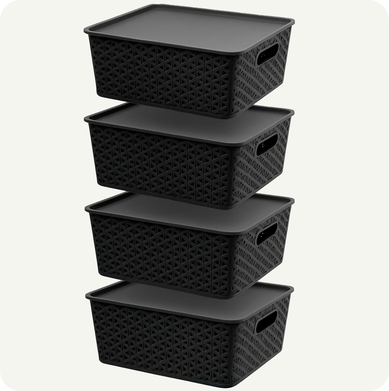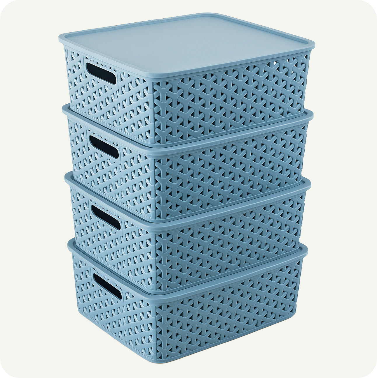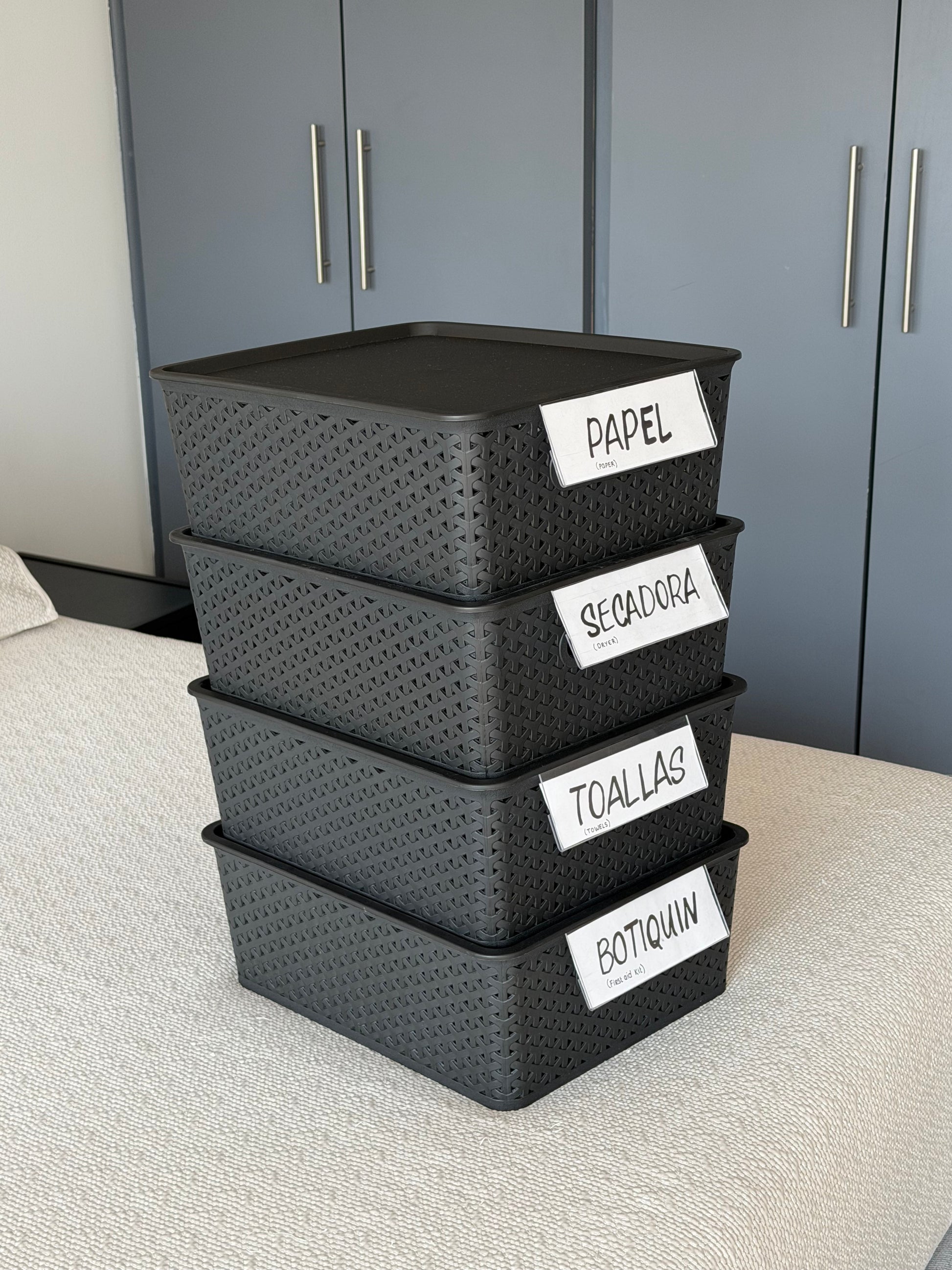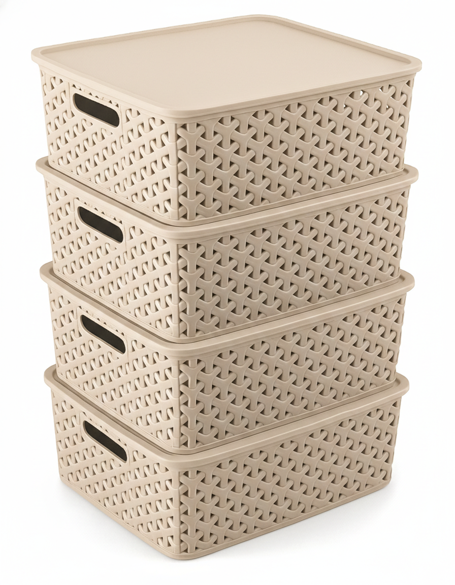⭐ Incluye 4 canastas grandes con tapa, diseño tipo rattan.