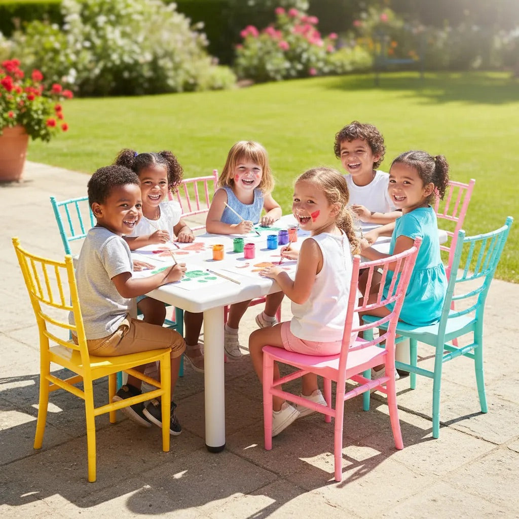 6 Sillas Tiffany infantiles: resistentes, apilables y con respaldo elegante